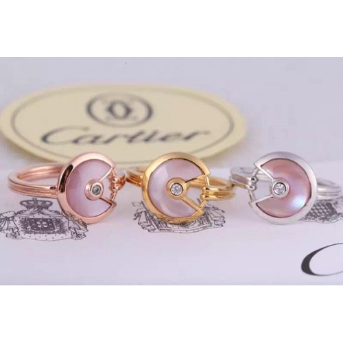 Pierścionek Amulette de Cartier z różowym opalem i diamentem w żółtym złocie, białym złocie i różowym złocie