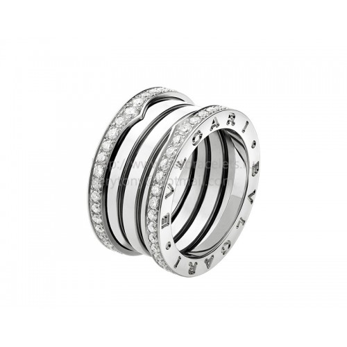 Pierścionek Bvlgari B.zero1 4-Band z białego złota z diamentami na krawędziach
