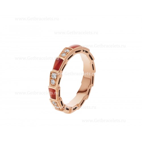 Pierścionek Bvlgari Small Serpenti Viper z 18-karatowego różowego złota z elementami karneolu i diamentami
