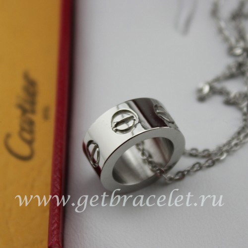 Ten naszyjnik składa się z pierścionka Cartier LOVE i łańcuszka z białego złota, rzeźbionego w kształcie śrub Cartier i LOGO