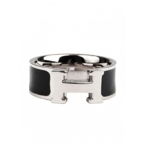 Pierścionek Hermes Enamel Clic H z 18-karatowego białego złota z czarnym