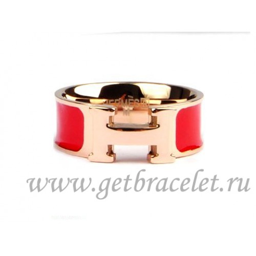 Pierścionek Hermes Enamel Clic H z 18-karatowego różowego złota z czerwonym akcentem