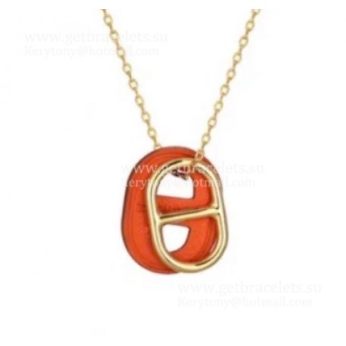 Naszyjnik Hermes Swift OMaillon z żółtego złota ze skórzanym wykończeniem w kolorze onange/białym, luksusowa podróbka