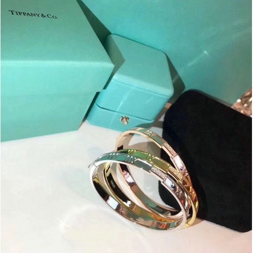 Bransoletka damska Tiffany Atlas z zamkniętymi zawiasami w kolorze srebra, różu/żółtego złota, z kryształkami
