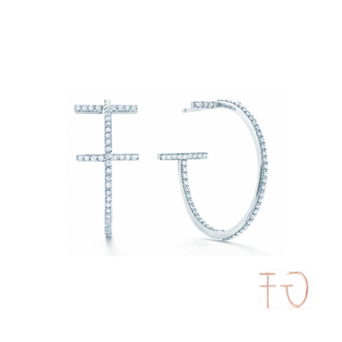Kolczyki Tiffany z drutu typu T Hoop ze srebra próby 925 z diamentami, wyprzedaż w Wielkiej Brytanii