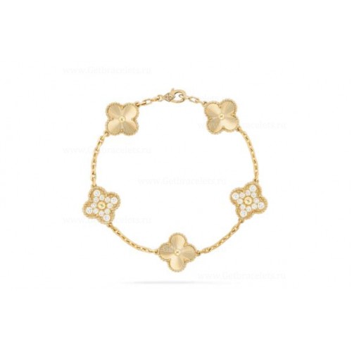 Bransoletka Van Cleef Arpels Alhambra 5 motywów Żółte złoto z diamentami