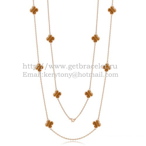 Naszyjnik Van Cleef Arpels Alhambra z różowego złota, 10 motywów z masą perłową tygrysiego oka