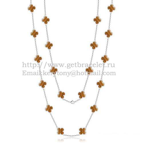• Naszyjnik Van Cleef Arpels Alhambra z białego złota, 20 motywów z masą perłową tygrysiego oka