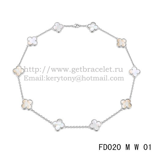 Naszyjnik Van Cleef Arpels Alhambra z białego złota, 10 motywów, biała masa perłowa, 45 cm