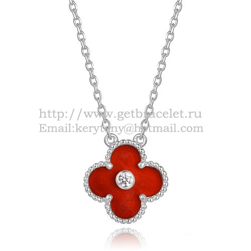 Wisiorek Van Cleef Arpels Alhambra z białego złota z karneolem i masą perłową, okrągłymi diamentami