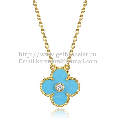 Wisiorek Van Cleef Arpels Alhambra z żółtego złota z turkusową masą perłową i okrągłymi diamentami