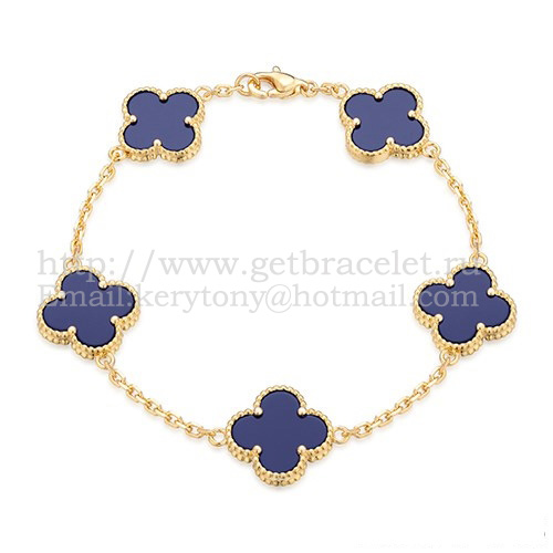 Bransoletka Van Cleef Arpels Alhambra 5 motywów z żółtego złota z masą perłową lapis lapis lazur