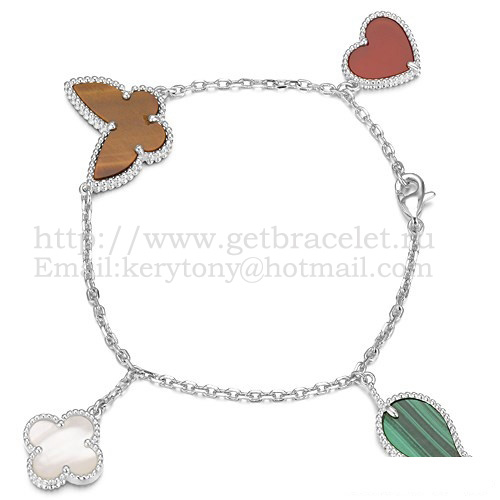 Bransoletka Van Cleef Arpels Lucky Alhambra 4 Motifs z białego złota z kombinacją kamieni 003