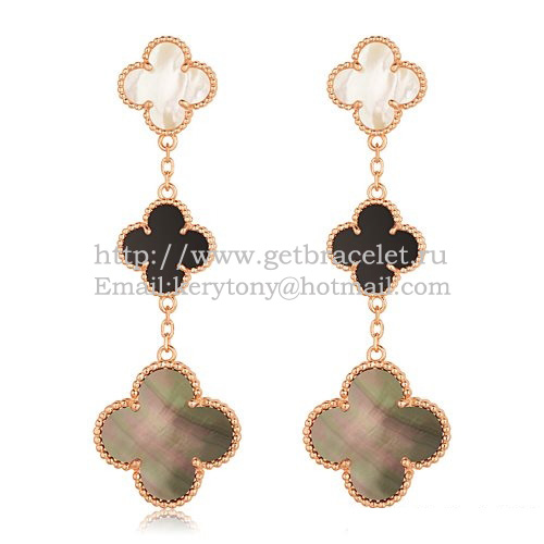 • Van Cleef Arpels Magic Alhambra 3 Motifs Kolczyki z różowego złota z kombinacją kamieni