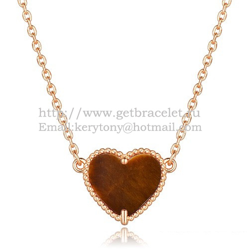 Van Cleef Arpels Sweet Alhambra Heart Pendant z różowego złota z tygrysim okiem i masą perłową