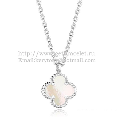 Wisiorek Van Cleef Arpels Sweet Alhambra z białego złota z białą masą perłową 9 mm