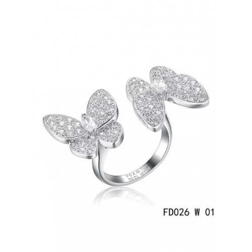 Van Cleef Arpels Dwa motyle między palcami Pierścionek z białego złota z diamentami