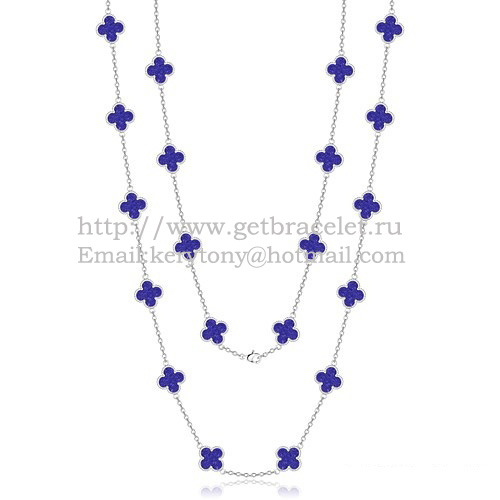 Naszyjnik Van Cleef Arpels Alhambra z białego złota, 20 motywów z masą perłową i kamieniem lapis lapis lazur