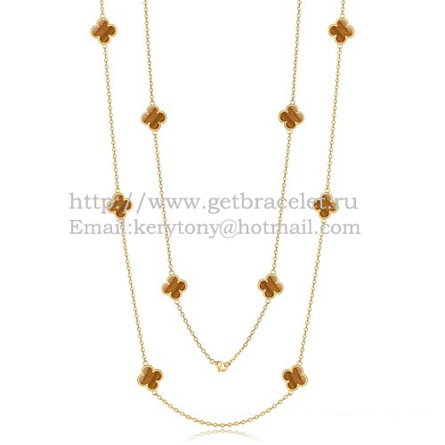 Naszyjnik Van Cleef Arpels Alhambra z żółtego złota, 10 motywów z masą perłową tygrysiego oka