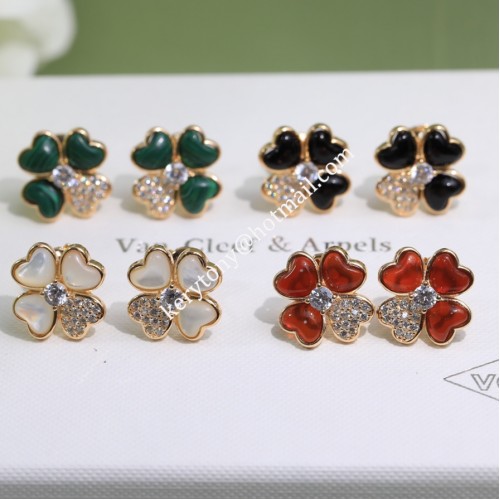 Kolczyki Van Cleef Arpels Cosmos w kolorze różowego złota z diamentami, białe/czerwone/czarne/zielone