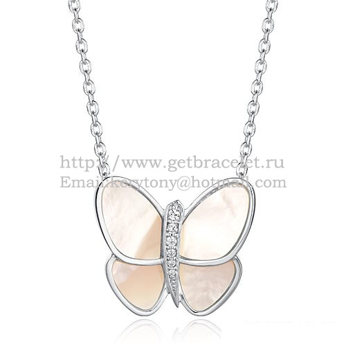 Naszyjnik Van Cleef Arpels Flying Butterfly z białego złota z białą masą perłową i diamentami