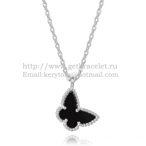Van Cleef Arpels Lucky Alhambra Butterfly Necklace Białe złoto z czarną masą perłową z onyksu