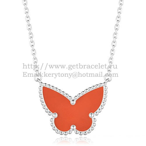 Van Cleef Arpels Lucky Alhambra Butterfly Pendant z białego złota z masą perłową z karneolu
